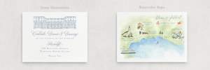 Add custom artwork like an illustration of your venue or a watercolor map (pricing upon request). Artwork by Erin Cockayne.
