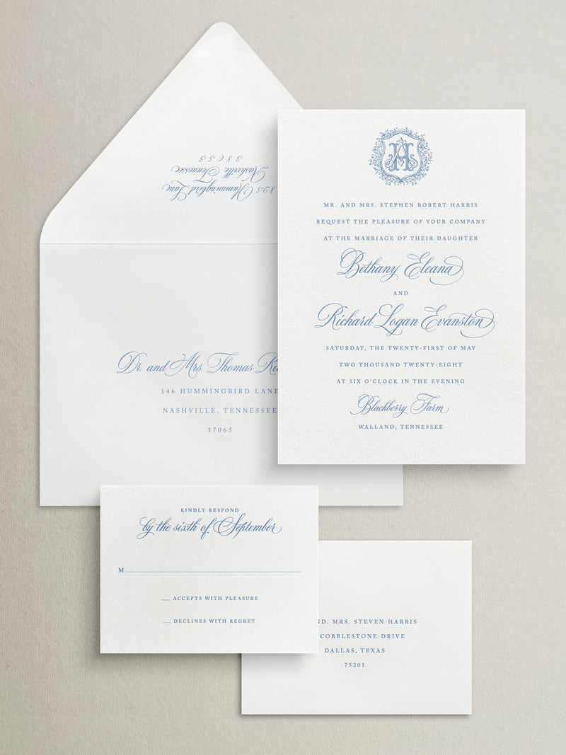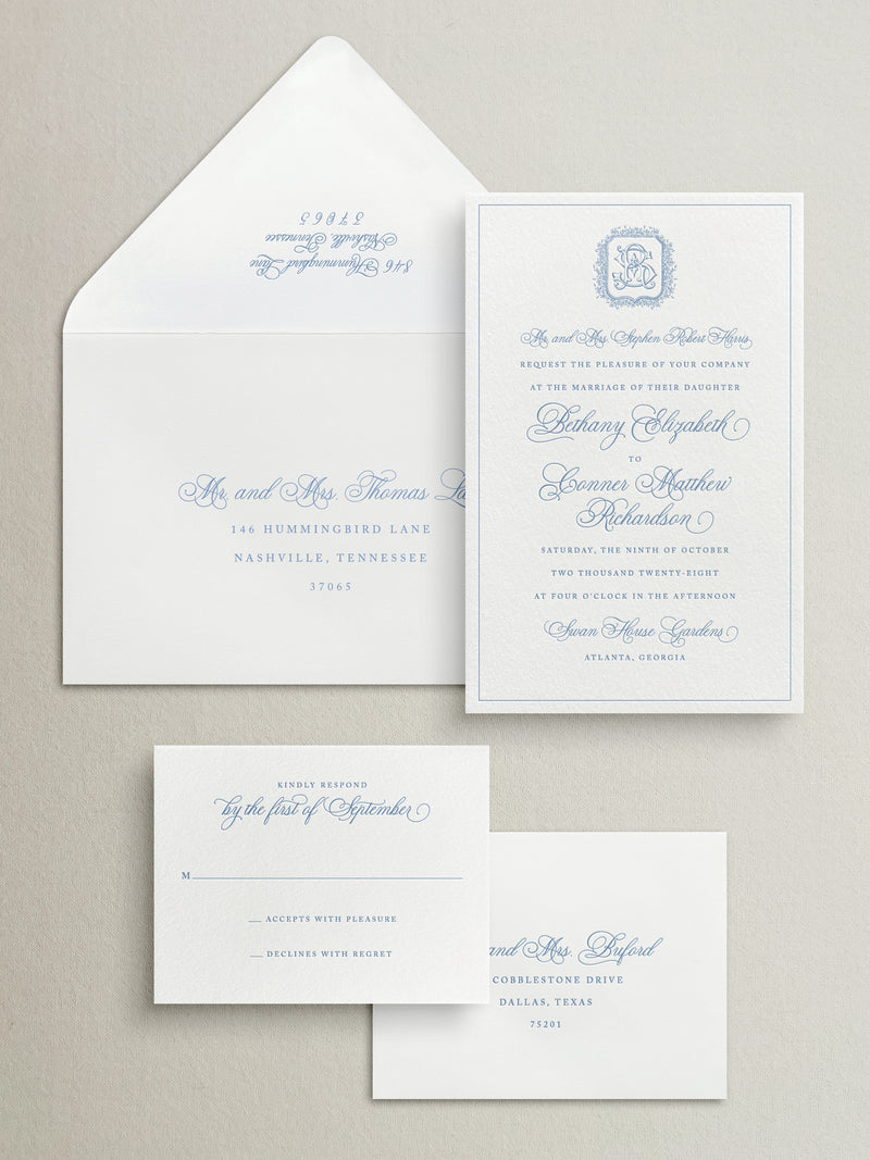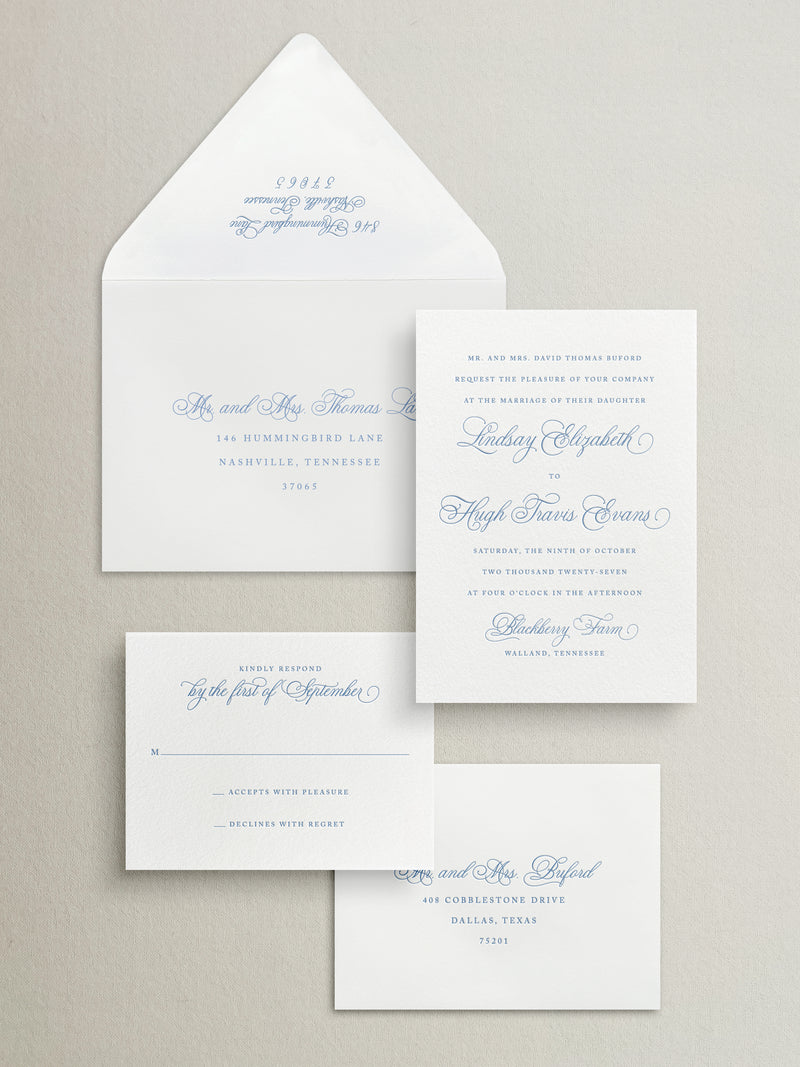Our invitation suite options are thoughtfully curated with flexibility in mind. From traditional to more layered formats, each option offers a refined starting point for wedding stationery designed with intention and ease.