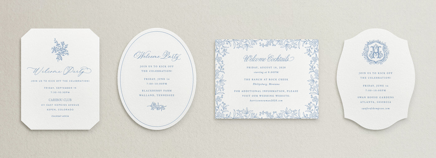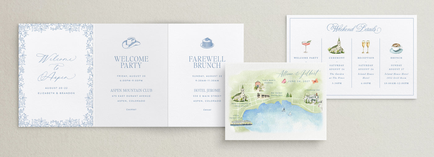 Details Cards provide guests with essential wedding information, from ceremony logistics to accommodations, maps and weekend itineraries. Each piece is styled to coordinate seamlessly with the invitation suite, creating a cohesive and elevated design.